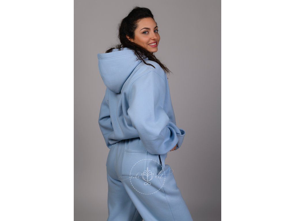 Mikina v jemnom modrom odtieni v OVERSIZE strihu prináša maximálny komfort a uvoľnený, moderný vzhľad. Voľná silueta pôsobí ležérne a zároveň štýlovo, doplnená o praktické klokanie vrecko.