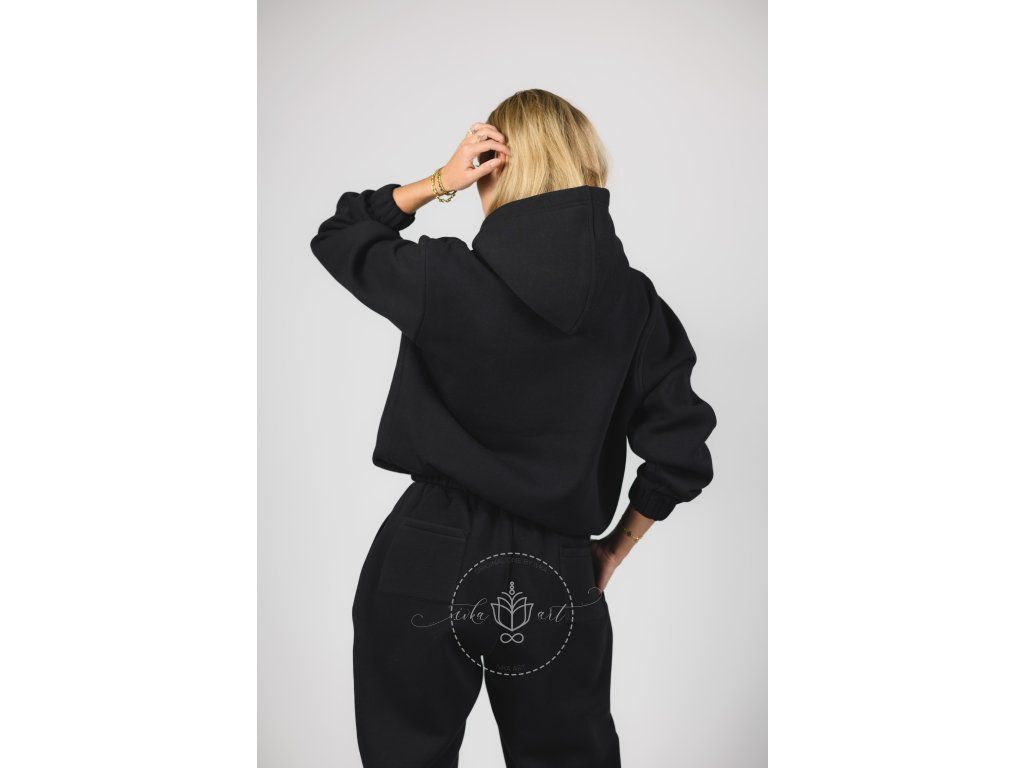 Mikina v čiernej farbe v OVERSIZE strihu prináša maximálny komfort a uvoľnený, moderný vzhľad. Voľná silueta pôsobí ležérne a zároveň štýlovo, doplnená o praktické klokanie vrecko.
