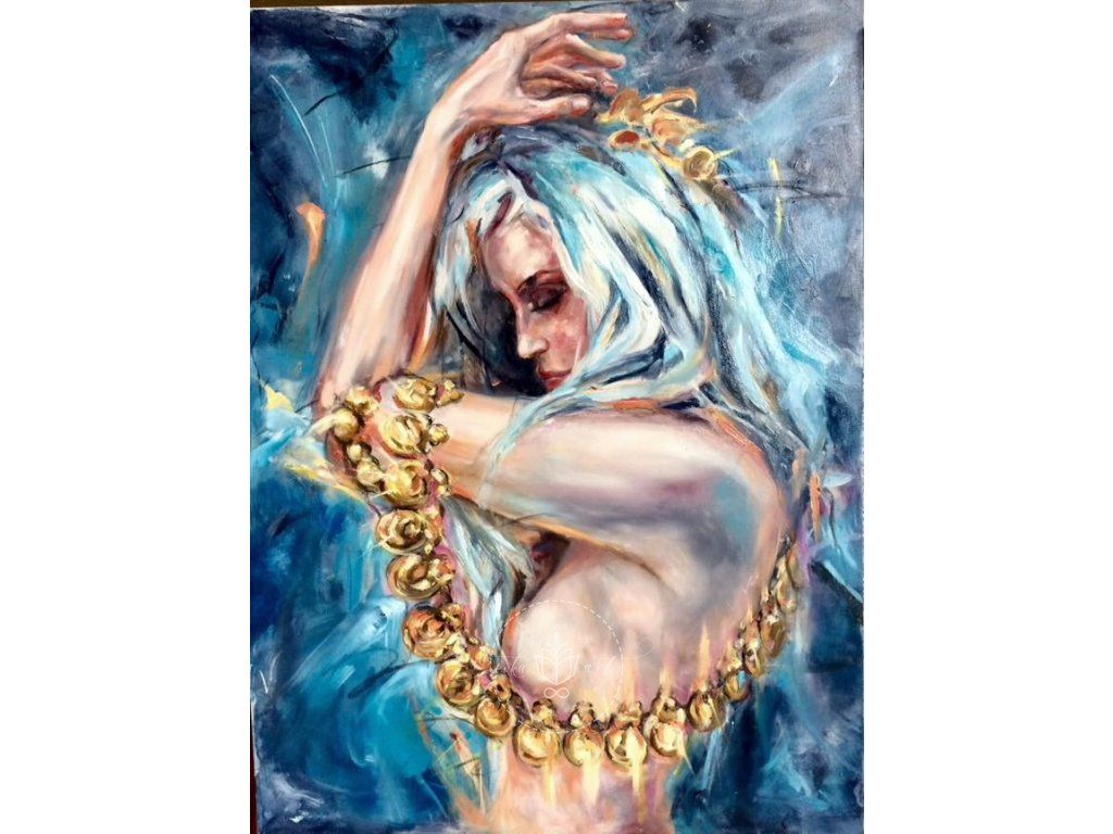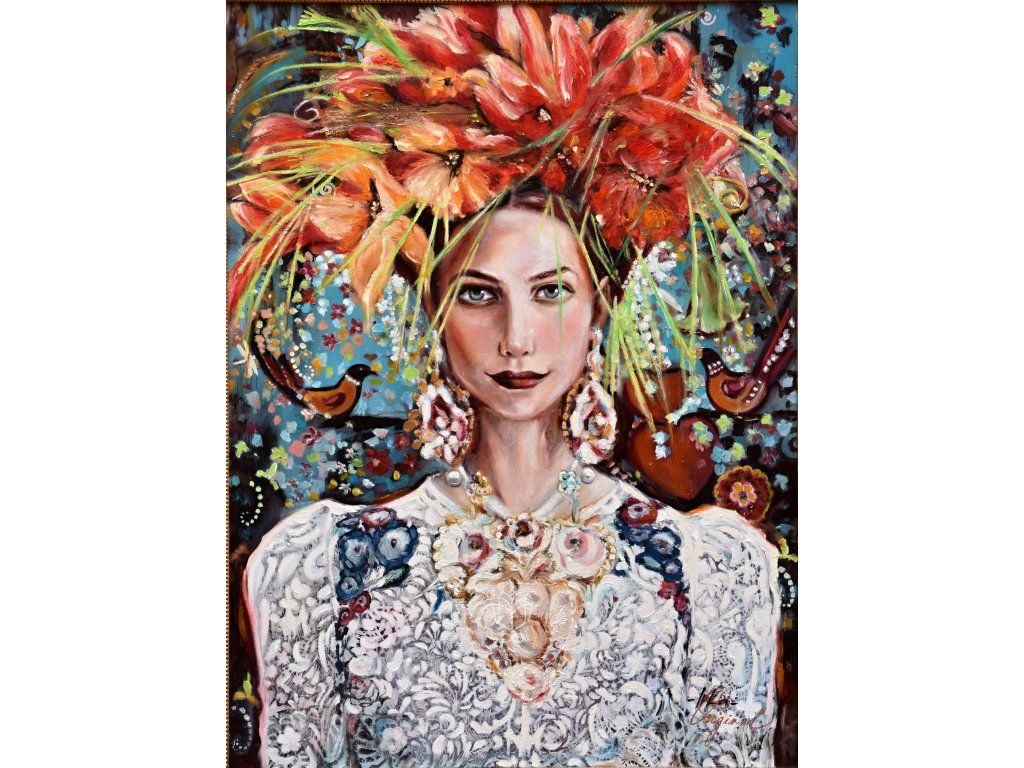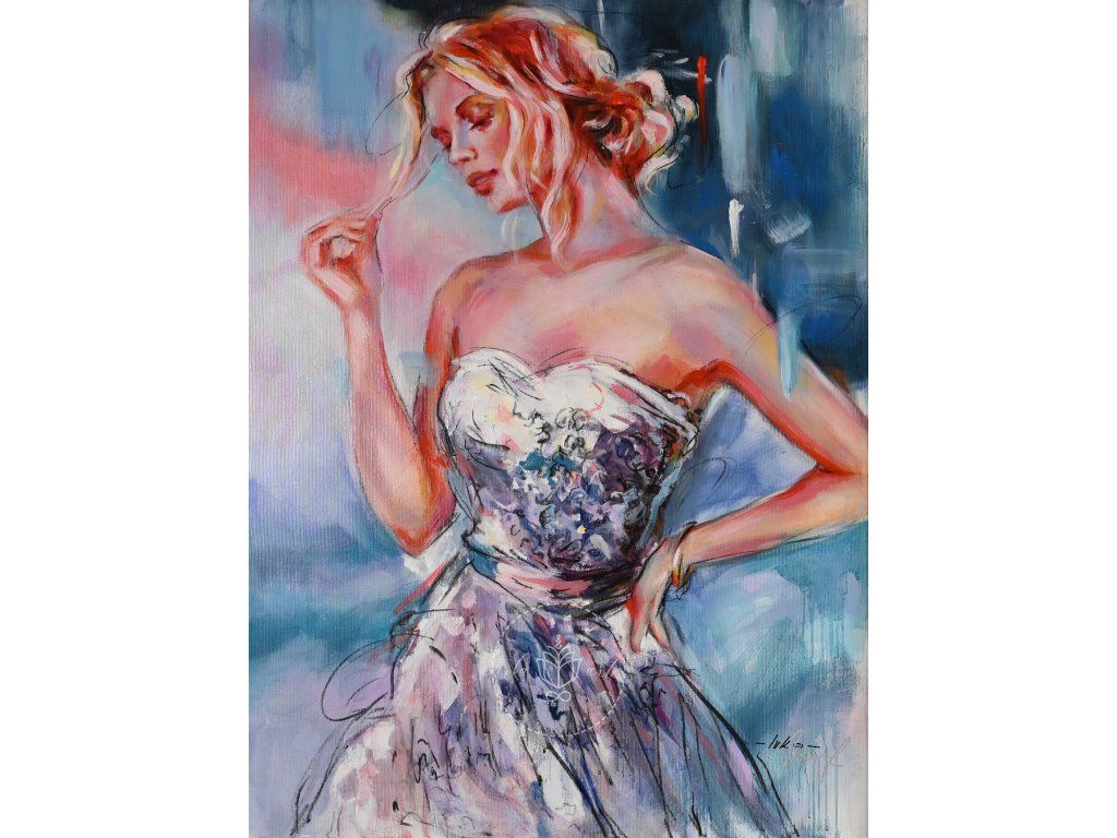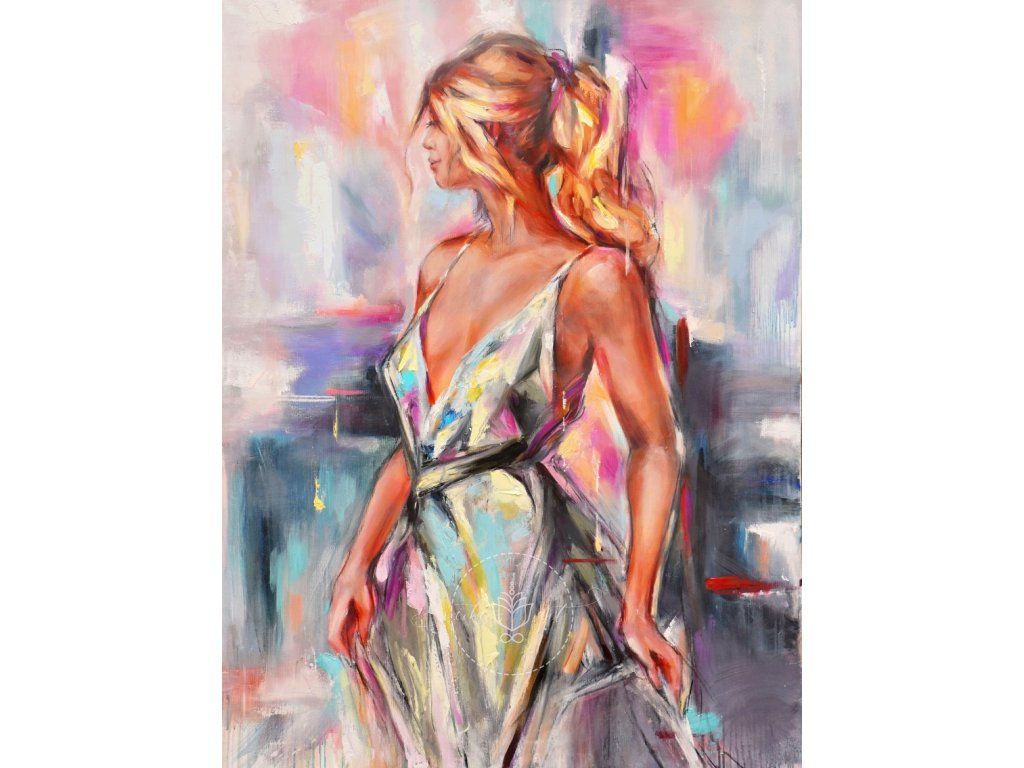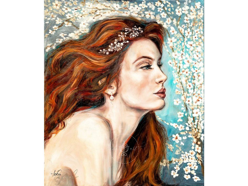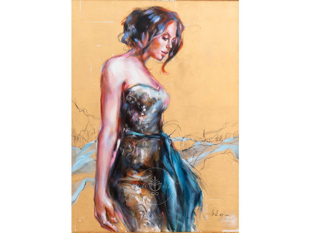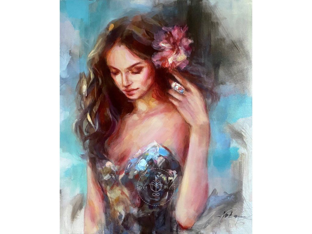 Jemný zamatový obraz nesie ženskosť, silu a tichú istotu v sebe samej.
