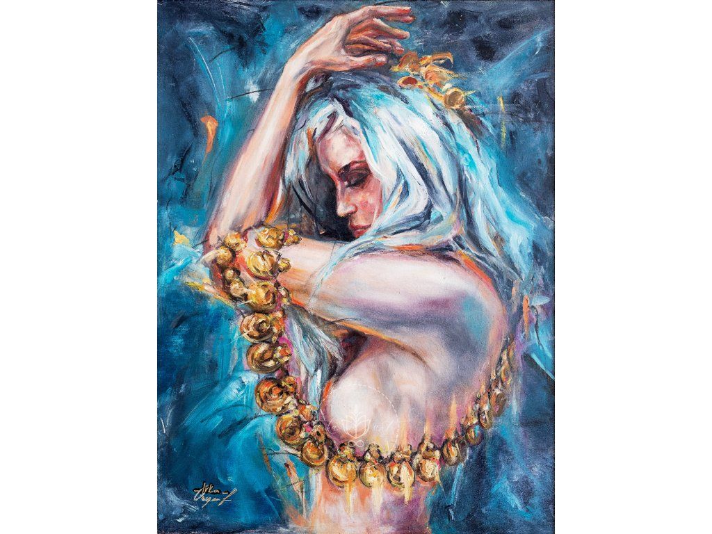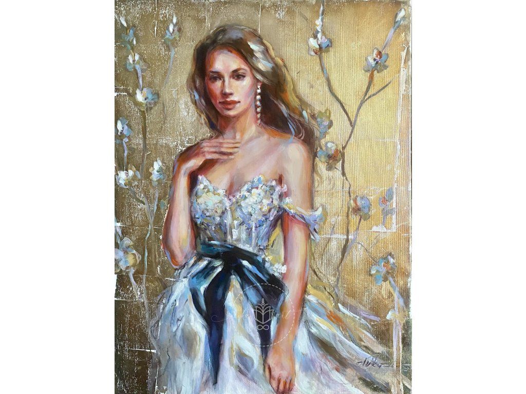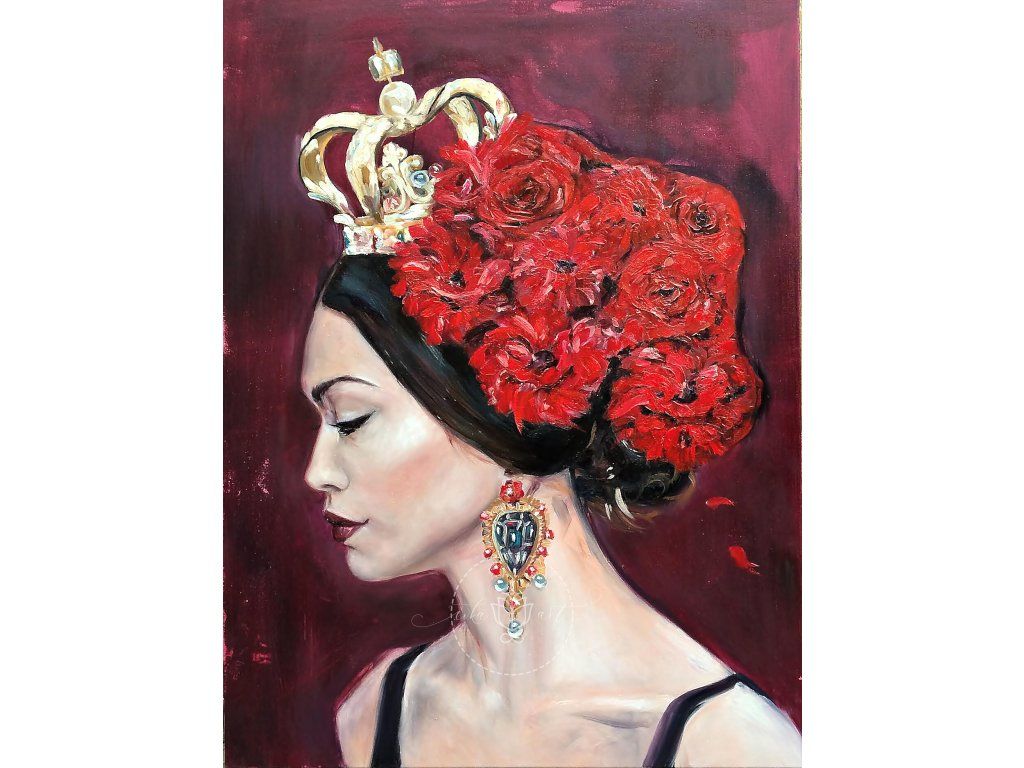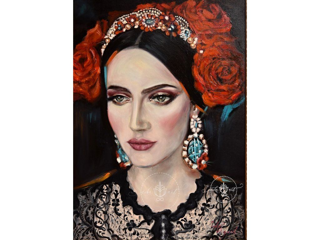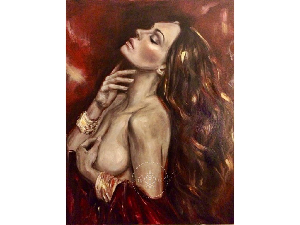 Jemný zamatový obraz nesie ženskosť, silu a tichú istotu v sebe samej.