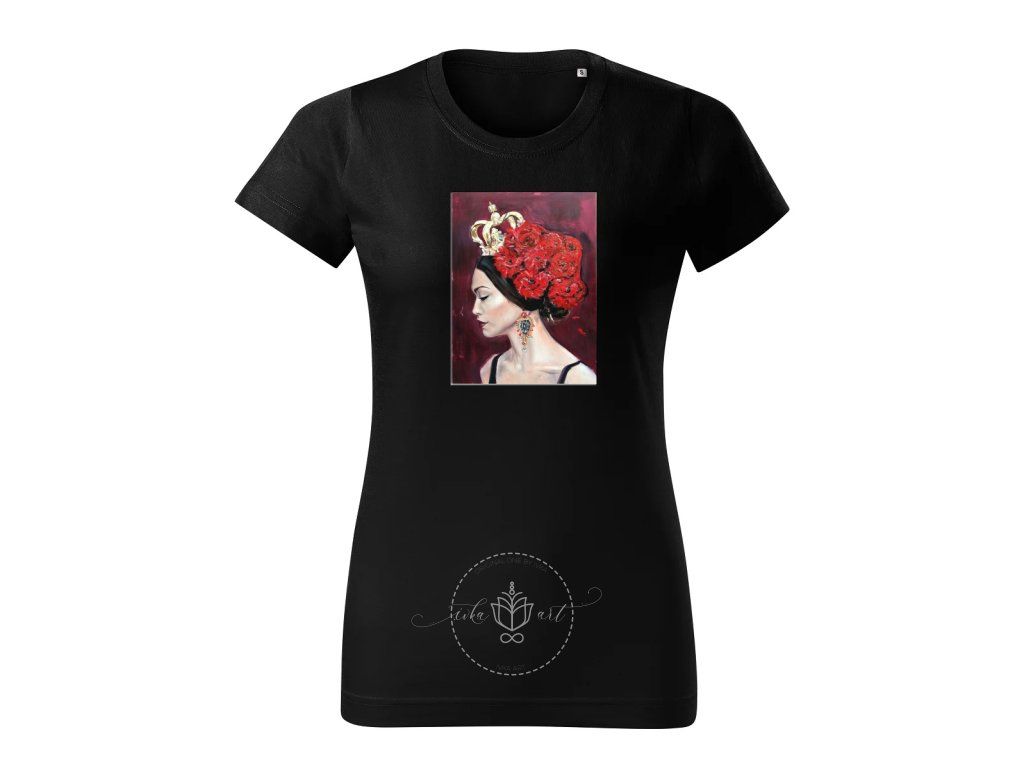 Autorský obraz Ivka ART je prenesený na jemnú zamatovú (velúrovú) látku šetrnou technológiou tlače a následne ručne našitý na tričko.