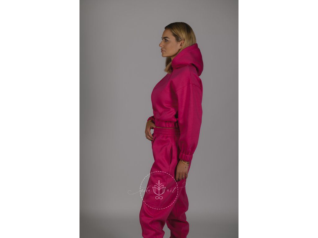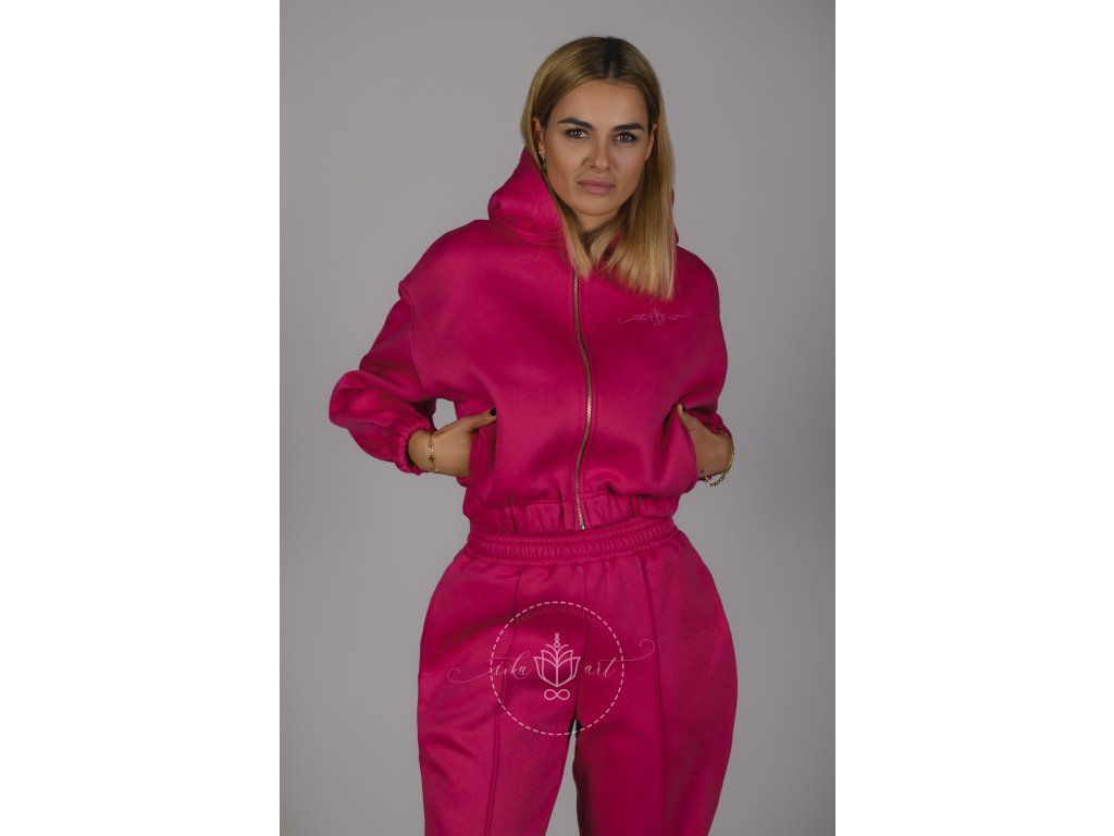 Mikina v nádhernom malinovom odtieni na zips s kapucňou v BOMBER CROP strihu spája pohodlie a ženskosť.